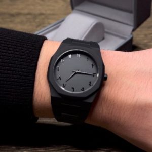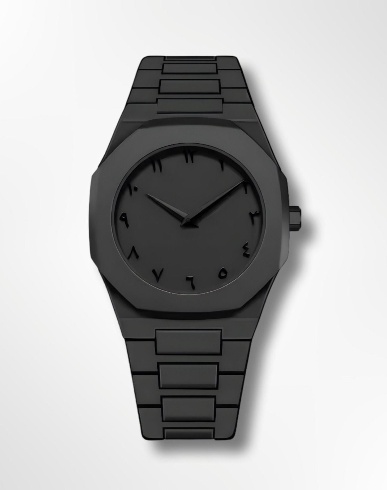 Black Arabic Numeral Minimalist Watch – A sleek, all-black timepiece featuring Arabic numeral hour markers for a bold, modern, and elegant look.