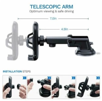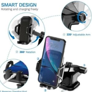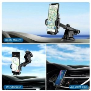 Multifunction Car Phone Holder – A versatile and secure mobile mount with telescopic arm and 360° rotation , designed for hands-free convenience on the road with dashboard, windshield, or air vent mounting options.